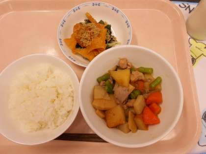 今日の主食は[ごはん]です。ごはんは、どんな食品とも組み合わせることができ、和食・洋食・中華どんな味のおかずにもよくあう、食事のまとめ役です。