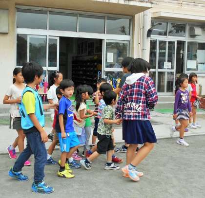 今日は今年度2回目の「なかよし班遊び」です。1年生から6年生までが、縦割り班で昼休みに遊びます。もちろんリーダーは6年生です。まずは、1年生をお迎えです!