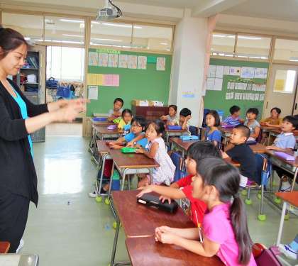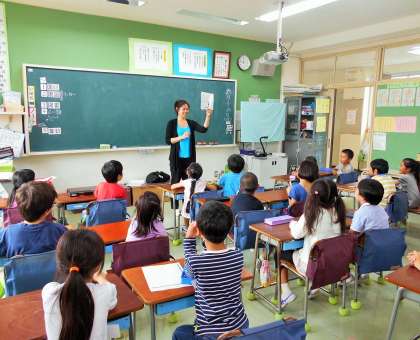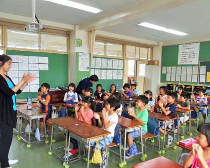 今日は1・2年生の英語活動です。カナダ出身のナナ タケウチ先生が本年度の砧小学校のALTです。今日は、自己紹介をしたり、クイズをしたり、楽しく英語と親しみました。