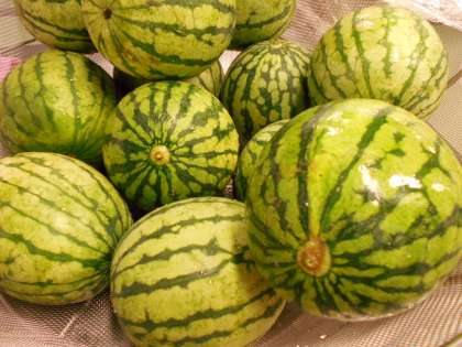 今日の給食のデザートは、[こだますいか]です。すいかは、90パーセントは水分です。これからの暑い季節には、すいかはのどをうるおしてくれ、体の熱をさます働きがあるので、夏バテに効果的です。