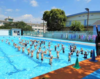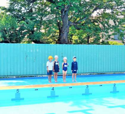 今日は1年生と3年生のプール開きを実施しました。砧小学校の子どもたちが安全で楽しく水泳学習ができるようみんなでお清めをしました。1年生は小学校の大きなプールは初めてですが、私の話を聞く姿勢もとてもしっかりとしていました。その後、水泳学習でのルールをみんなで確認して、プールに入り水慣れをしました。