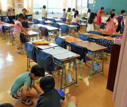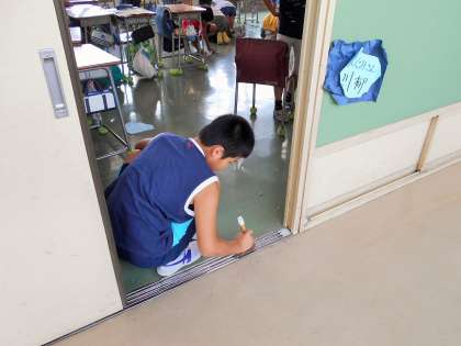 掃除を通して「おしゃべりをしないで我慢する心」、「自ら汚れているところを見つける心」、「困っている友達を手伝ってあげる親切な心」を磨いていきます。今日は暑い一日でしたが、子どもたちは掃除の時間も真剣にがんばっています!