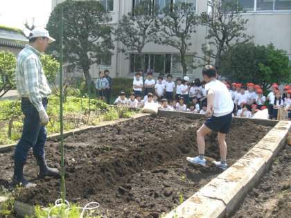 今年も5年生は海老沢さんのご指導を受け、きゅうり作りに取り組みます。
