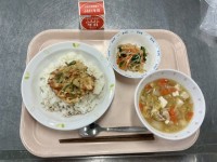 給食時間に教室をまわると、「1年生ががんばってくれたから、たくさん食べよう」「おいしい」とどの学年の子どもたちももりもり食べてくれました。
