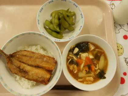 給食時間に教室をまわると、「1年生ががんばってくれたから、たくさん食べよう」「おいしい」とどの学年の子どもたちももりもり食べてくれました。