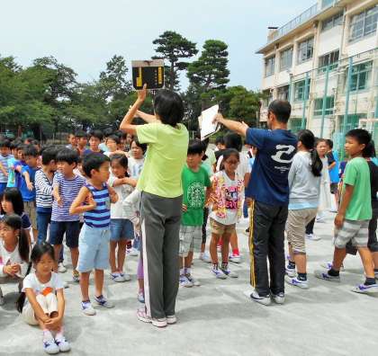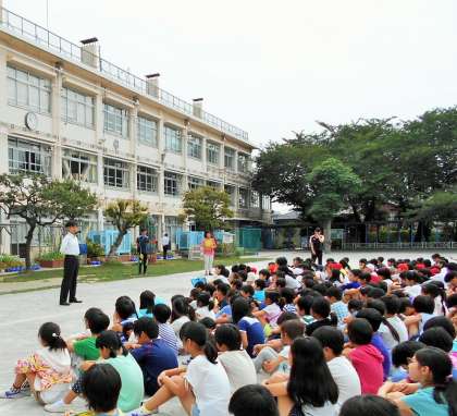 今日の避難訓練は、校内に不審者が侵入したという想定で行いました。子どもたちは「お・か・し・も」の約束を守り一人一人が真剣です。教職員は、不審者に対応するとともに、更なる侵入を防ぐために素早く教室の扉を施錠しました。私たちは、子どもたちの安全を第一に考え、よりよい方法で対応をします。