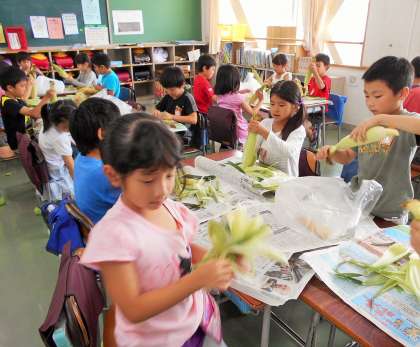 7/14 とうもろこしの皮むき体験〜2年生〜