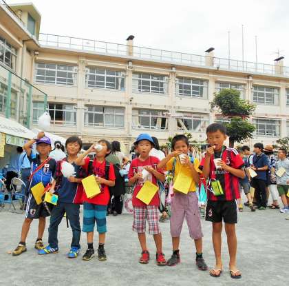 町会や保護者の皆さんのお店をはじめ、たくさんの団体が出店してくださいました。子どもたちはゲームをしたり、食べたり、盆踊りをしたりと、とても楽しい夏祭りのひと時を過ごしました。