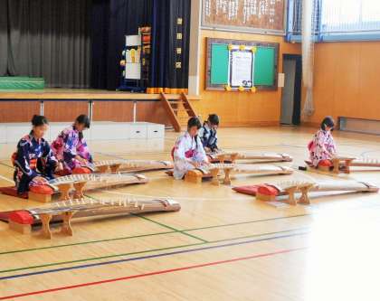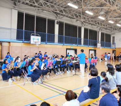 体育館では、砧南中学校の筝曲、砧中学校の吹奏楽の演奏です。