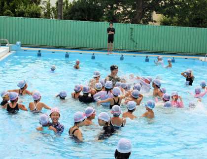 今日は夏季水泳教室の6日目です。ようやく梅雨が明け、今日は快晴で絶好のプール日和です。プールの水はとっても気持ちがいいです。今日も砧小学校の先生たちが大勢、指導に入っています。泳力別に基礎からしっかりと指導していきますので、毎日来ているとぐんぐん上達します。
