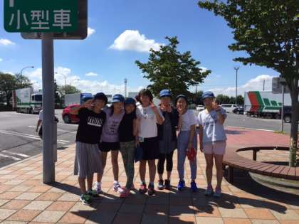 羽生パーキングに着きました。高速道路はここまで順調で10分早く到着しました。天候は晴れです。この後、バスレクを楽しみながら日光だいや川公園に向かいます。