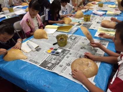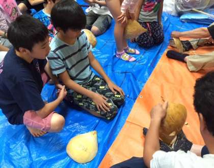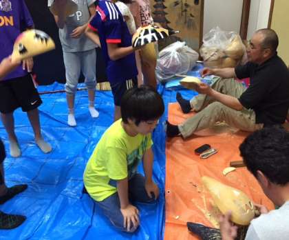今夜はふくべ細工体験です。職人さんから作り方の基本を教えていただきました。