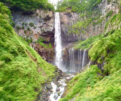 華厳の滝に到着しました。落差97mの迫力ある滝を見ることができました。これだけ水量豊富な滝を見られることはなかなかありません。
