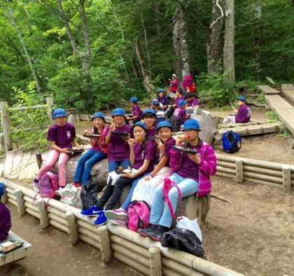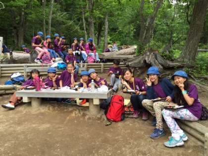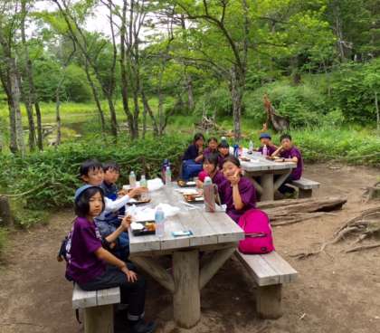 戦場ヶ原をクラス毎にハイキングです。途中、景色のよい泉門池でお弁当を食べました。