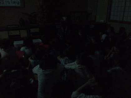 子どもたちは肝試しをして、日光最後の夜を楽しみました。まず、村上先生のこわ〜い話を聞いた後、真っ暗な中を二人一組で歩いて、お札を取りに行きました。楽しんだり、怖がったりしていました。