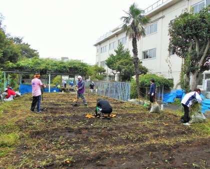 ボランティアの皆様のご協力をいただき、畑は、みるみるうちにきれいになっていきました。