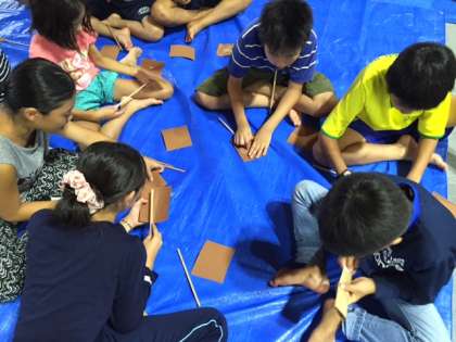 お箸づくりに挑戦です。2種類の紙ヤスリを使って木を削りながら、お箸の形に整えていきました。同じ太さや形にするのは、なかなか大変なことです。みんな一生懸命つくっているうちに、あっという間に時間が過ぎていきました。