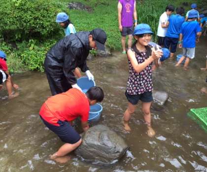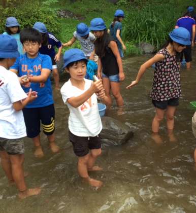 子どもたちは大喜びです。この後、マスの塩焼きとしていただきます。