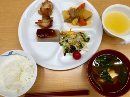 入浴の後は夕食です。食欲も旺盛です。