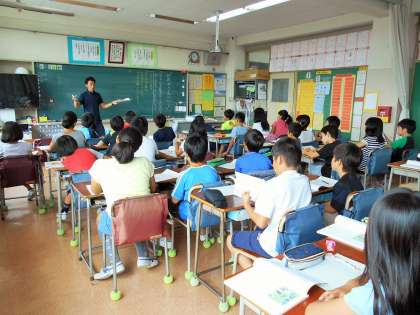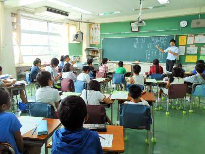 写真は、4年生、5年生、6年生の道徳授業の様子です。