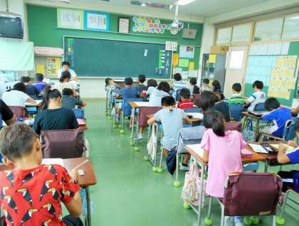 今年度の重点目標の一つである、基礎学力の定着に向けて、始業前の朝学習に取り組んでいます。本日は算数で、計算プリントや計算ドリルに向かい、静かに集中して、真剣に取り組んでいました。計算などの基礎的技能の向上により、一人一人の基礎学力が定着するよう指導しています。