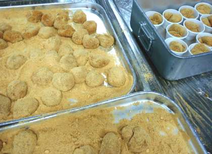 給食では、白玉粉と豆腐をあわせ、一つ一つ丸めて作った月見だんごを出しました。教室をまわっていると、「だんごがおいしいです!」「これは、どうやって作るのですか?」と話してくれた子がいました。食に興味をもっていることがわかり、とても嬉しかったです。