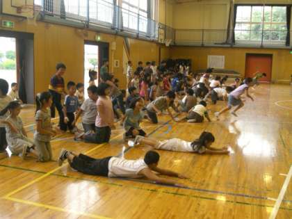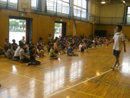 梅雨の時期で、なかなか校庭での朝トレができません。今日は、体育館で仲良し班対抗のリレーを行いました。1回戦目はうつぶせの状態からダッシュ。2回戦目はひざを10回あげて、ダッシュというものです。体育館での朝トレは4月から何度も行っているので、子どもたちは慣れたものです。アンカーの人がゴールしたときに自然と「姿勢をしっかりして!!」の声が聞こえてきます。4月に「最後の姿勢までが勝負だよ」と言ったのを、しっかり覚えているようです。