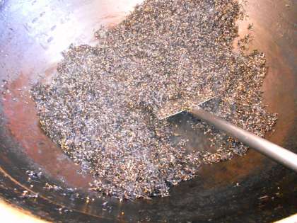今日の手作りふりかけは、[ひじきふりかけ]です。ひじきは海藻の仲間です。成長に必要な鉄や、おなかの掃除をしてくれる食物せんいが豊富に含まれています。子どもたちに好きになってもらいたい食材です。