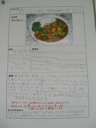 保護者の方にご協力をいただき、家庭学習として『カレー作り』を経験した子どもたち。川場移動教室での飯盒炊さんの練習としてだけでなく、おうちの方に手ほどきをいただきながらのカレー作りは、家族への感謝、料理を作ることの大変さ・楽しさ、家族の方々からのほめ言葉による自信・・・大変有意義な体験となりました。