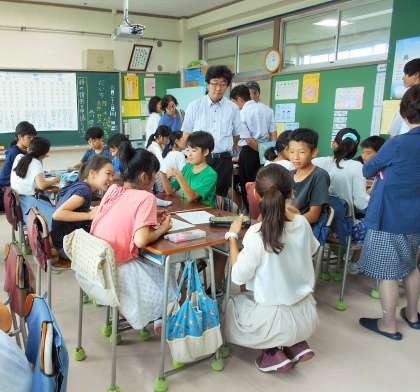 6年生国語は「だいち」の単元で、「友達の意見を聞いて、詩の情景を想像する」というねらいをもっての学習です。子どもたちの活発な意見が素晴らしかったです。