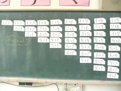 算数カードがきれいに並んだ黒板を見て、「おもしろいなぁ。」とつぶやく子どもたちの姿が印象的でした。
