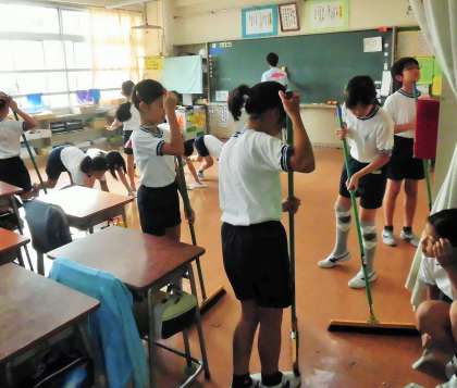 お掃除の時間に静かだなと思ったら、今日は自問清掃の日でした。2学期も、毎週、金曜日は「自問清掃」に取り組んでいます。自らの心に問いかけながら、3つの心を磨いています。