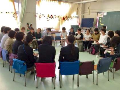 砧の学び舎では、小学校の連携も大切に、学び舎教育の充実のために活動をしています。