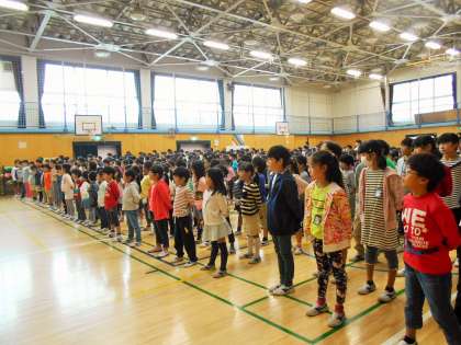 今日の全校朝会では、明後日の19日(水)に6年生が世田谷区立小学校連合運動会に出場をしますので、それに向けての話をしました。