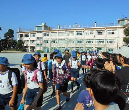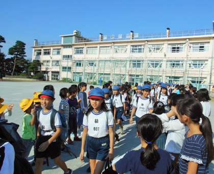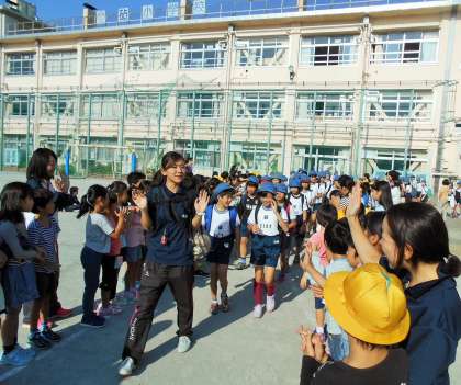 今日は6年生の連合運動会です。6年生が総合運動場に向けて出発するときに、朝ランニングを終えた1〜5年生が、激励の拍手をして見送りました。6年生のこれまでの努力を見てきている下級生の気持ちが表れていて嬉しく思いました。
