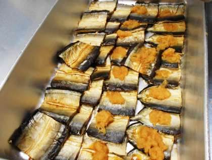 魚は秋が旬のさんまを使用しました。さんまを焼いて、おろしのソースをかけていただきました。