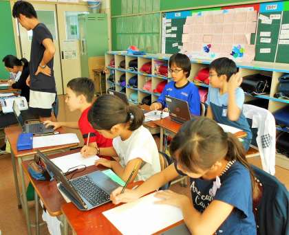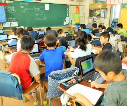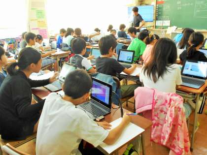 5年生は理科「雲と天気の変化」の単元で、昨年秋に導入されたタブレットパソコンを活用し、教室で学習をしています。「いろいろな雲の色や形、種類について調べてみよう」という課題が出されています。タブレットを使って子どもたちは、教科書以外の雲も見つけられるよう興味津々です。これからは雲の様子を見て、午後の天気や明日の天気を予想できるといいなと思っています。