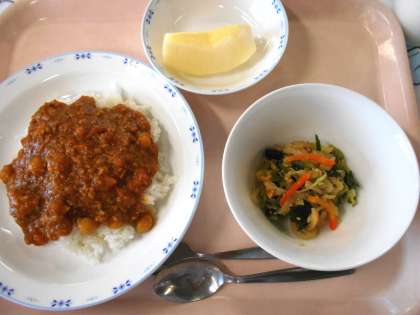 今日は、いつものキーマカレーにひよこ豆を加えました。ひよこ豆は、インドやメキシコで食べられている豆で[ガルバンゾー]という別名があります。