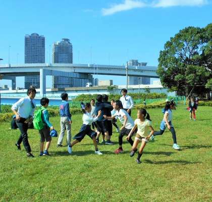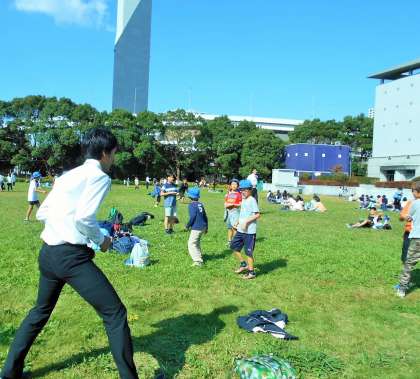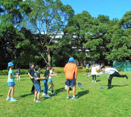 広大な芝生で、思いっきり遊びました!4年生は遊びが大好きです!いつも鬼役の先生たちはぐったりです。