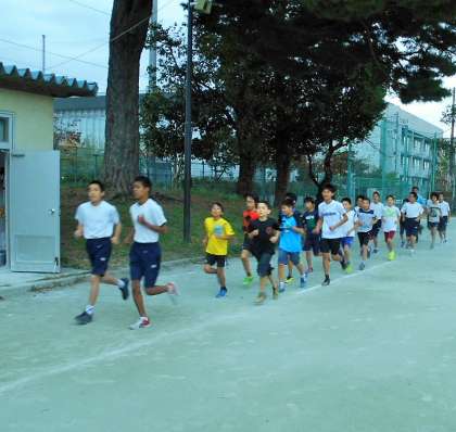 今日から、「第6回世田谷子ども駅伝」(学び舎対抗駅伝)に向けての朝練習がスタートしました。砧の学び舎からは、男子3チーム、女子2チームがエントリーしています。砧中学校、砧小学校、明正小学校、山野小学校から、小学生6名、中学生4名がチームを組み、たすきリレーをします。