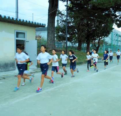 今日は、長距離走の走り方のポイントを確認し、その後、集団走を行いました。大会に向けて、一人一人の力を精一杯引き上げたいと思っています。