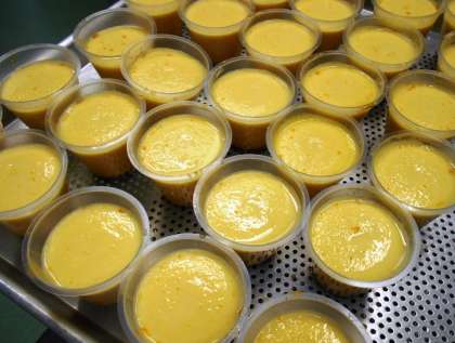 今日は、ハロウィンにちなんで、給食室では[かぼちゃプリン]を作りました。