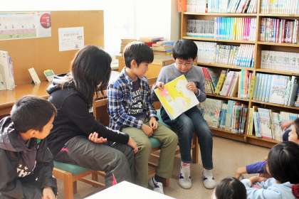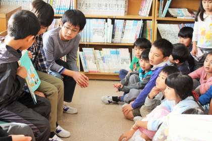 図書委員会の子どもたちが、昼休みに読み聞かせをしています。この日は、おはなし給食で紹介された「11ぴきのねことあほうどり」です。どの子も身を乗り出して、絵本の世界に惹きこまれていました。読み聞かせの後は、拍手で感謝の気持ちを表していました。
