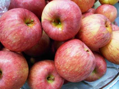 今日のくだものは、りんごです。りんごは、栄養豊富なくだもので、かぜの予防にも効果的です。生で食べるのはもちろん、アップルパイにしたり、さつまいもと重ねて煮たり、調理して食べるのもおすすめです。