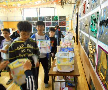 展覧会に向けて、立体作品の搬入が始まっています。一人一人の子どもたちが、思いを込めて表現しました。一人一人の工夫、オリジナリティー溢れる作品を楽しみにしていてください!