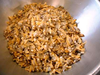 今日のスープは、あさりの[クラムチャウダー]です。今日は熊本産のあさりを使っています。あさりには、成長期にはかかせない鉄分やビタミンが豊富に含まれています。子どもたちに、ぜひ食べてもらいたい食品です。クラムチャウダーの他に、みそ汁やパスタなどに入れても美味しいです。