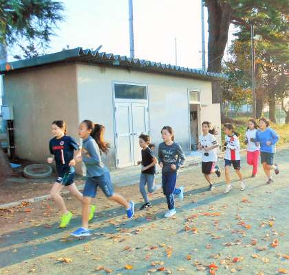 今朝は、世田谷子ども駅伝に向けての合同朝練習5回目です。砧の学び舎(砧小学校、明正小学校、山野小学校)選抜チームの練習は、早朝7時集合での練習会ですが、子どもたちはとっても意欲的にがんばっています。今日のメニューは2000mのペースランニングです。ペースを徐々に上げながらゴールまで集団で走りきれたことが大きな成果です。