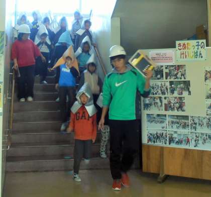 今日は11月の避難訓練です。授業中に地震があり、校庭に避難するという想定で行いました。多くの子どもたちは、「お・か・し・も」の約束を守り、素早く避難し、話を聞く姿勢もとても立派でした。しかしながら、ほんの一部の子どもたちが、小さな声ですがお喋りをしてしまいましたので、今回の避難訓練は「不合格」としました。私たちは一人一人の命を守ることを常に考えて、今後とも厳しく訓練に臨みます。