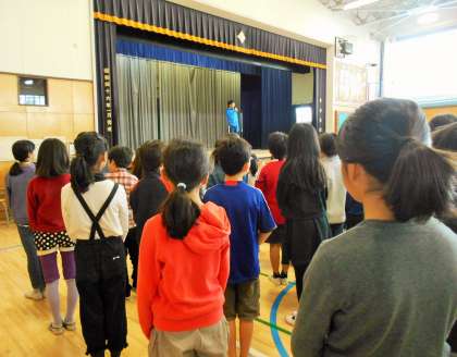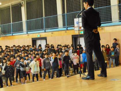 今日の全校朝会では、展覧会の児童鑑賞日の話をしました。2年生と5年生など、異学年がペアになり、互いに作品を鑑賞し合いながら、それぞれの作品の工夫したところや見どころなどを説明しました。その際に、上級生が自然に下級生と手をつないだり、背中に触れたり、肩に手を置いたりと、優しく接している姿がたくさんあり、私はとっても嬉しく思いました。