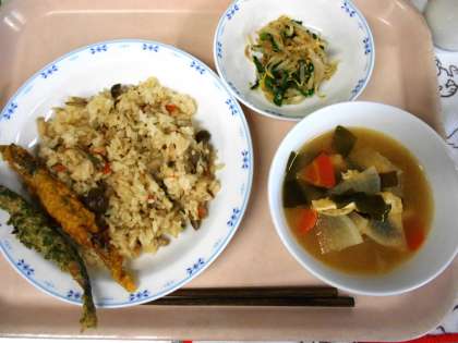 今日の給食の主菜は、[ししゃもの二色揚げ]です。ししゃもは、頭から食べられる魚なので、成長期の子どもたちにとって、大切なカルシウム源です。